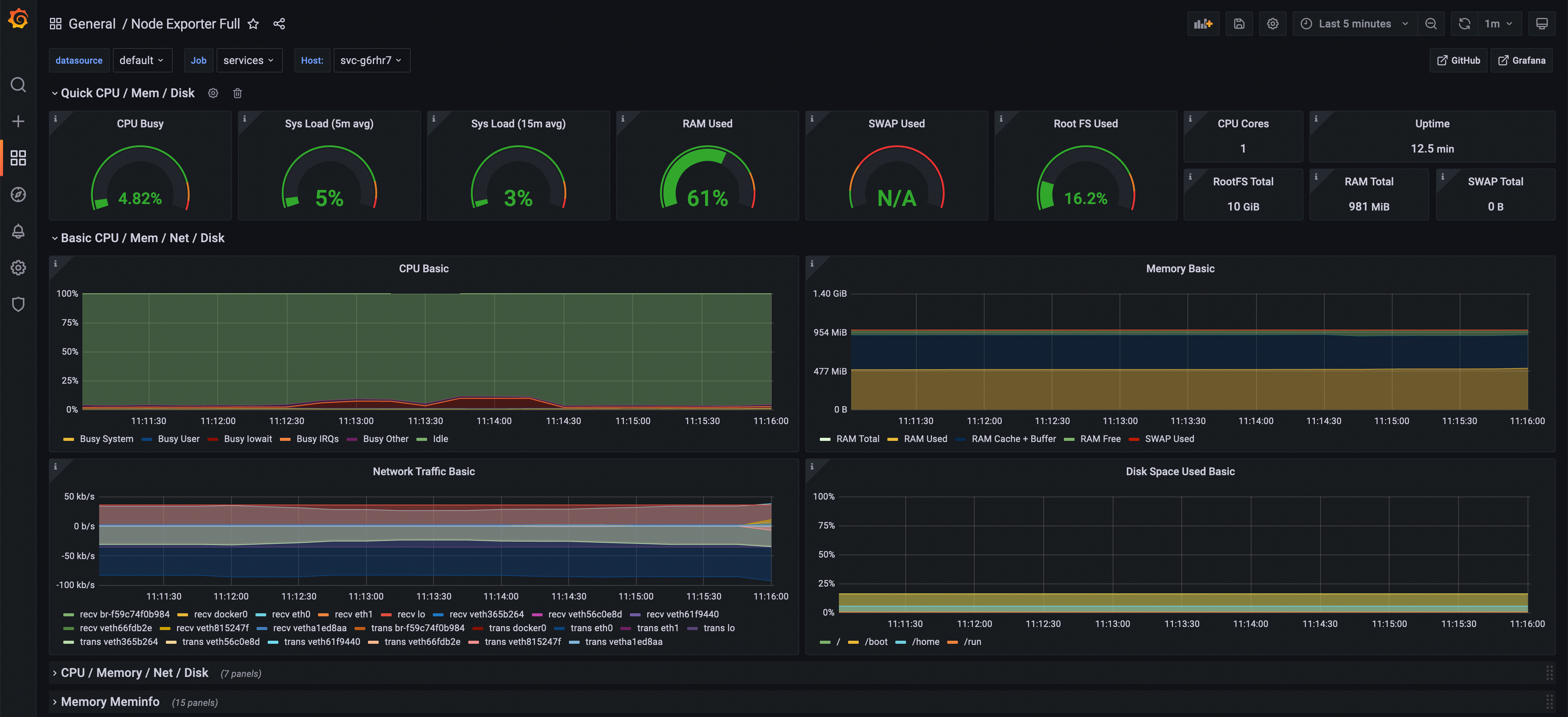 Grafana dashboard showing an instance in real timeGrafana dashboard showing an instance in real time
