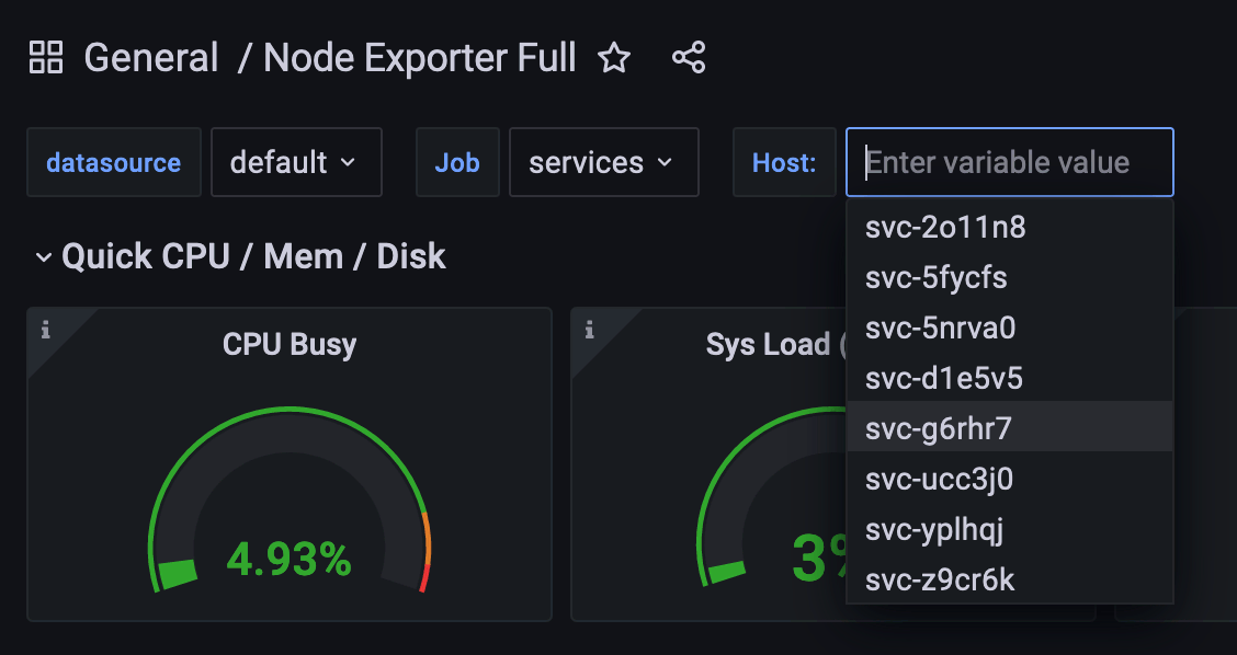 At the top left of the screen you can choose the instance you want to view by clicking on the host list.